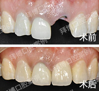 治疗前:左上前牙折断,牙冠龋坏至龈下5-6mm