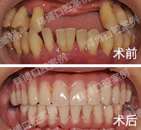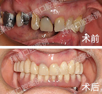 治疗前:前牙缺失,牙槽骨萎缩,多数牙齿松动
